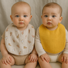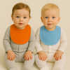 Deux bavoirs 100 % coton avec verso en éponge bambou Oeko-Tex. Taille 26×24 cm, réglables grâce à 2 pressions.