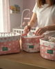 Grâce à sa grande polyvalence, le  Paniers de rangement bébé réversibles – Vert Étoiles Blanches s’intègre parfaitement à la table à langer, à la chambre de bébé ou au salon, et peut aussi servir de rangement pour jouets et petits trésors.